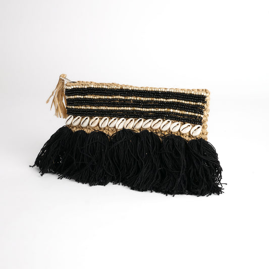 Pochette zippée en raphia perles et coquillages