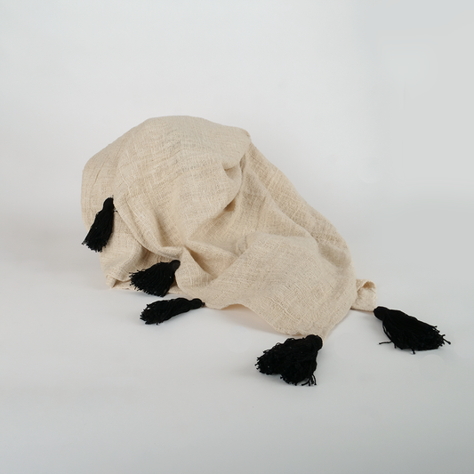 Plaid beige avec pompon noir 120*200