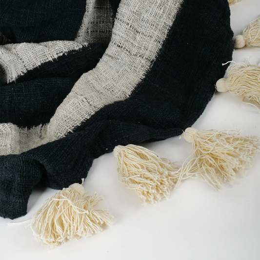 Plaid noir à pompons noir 140*200